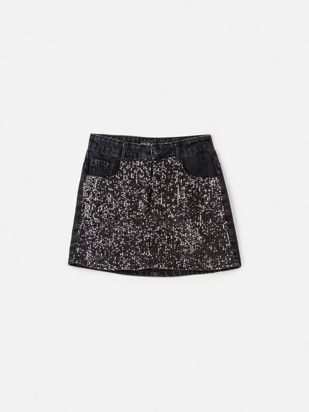 Elegante e moderna, esta saia preta com brilho é ideal para composições noturnas e sofisticadas. O toque cintilante adiciona glamour, sendo perfeita para quem quer se destacar em eventos especiais.