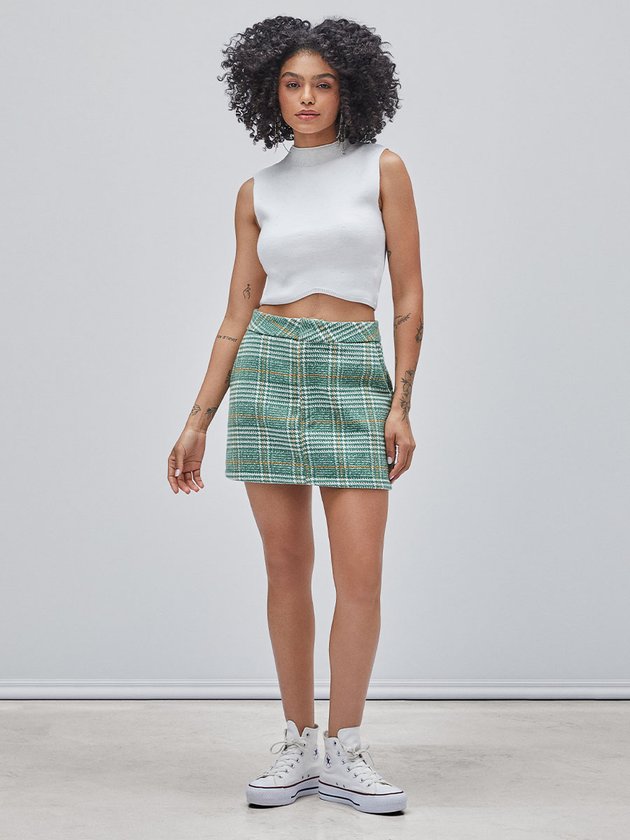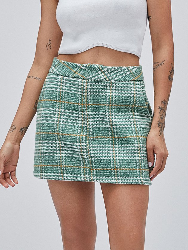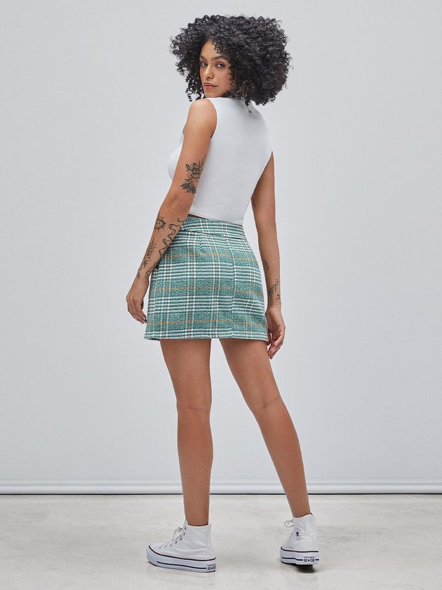 Saia Verde de Tweed Xadrez
