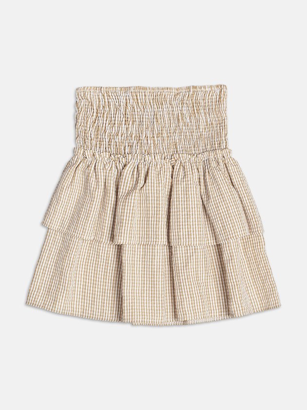 Com efeito anarrugado e estampa xadrez suave, essa saia propõe um mix entre tradição e modernidade. Um item ideal para compor produções cheias de textura e sofisticação. Ref.: R5256