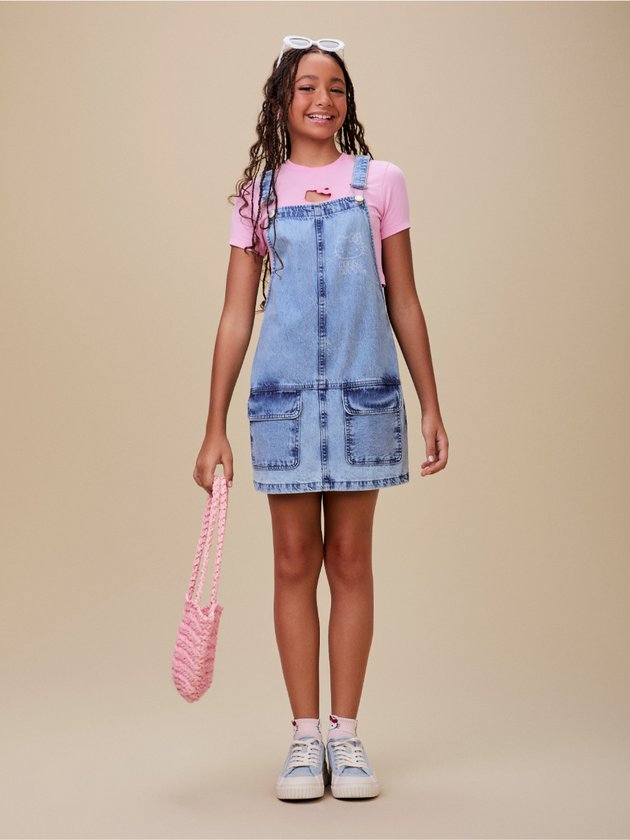 Prática e cheia de estilo, a salopete jeans ganha bolsos cargo e um shape descomplicado. Ideal para looks urbanos com toque utilitário e visual moderno.