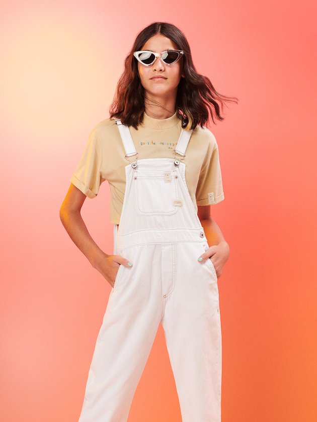 A Jardineira I’am foi desenvolvida em sarja na cor off white, possui alças com reguladores de metal para melhor ajuste, etiqueta decorativa na parte da frente e abertura lateral com botão que deixa um charme a mais para a peça. Composição: 100% Algodão. Ref.: R3140