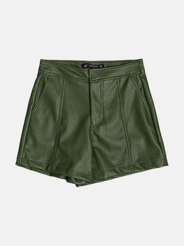Shorts Fake Leather Green com Recortes