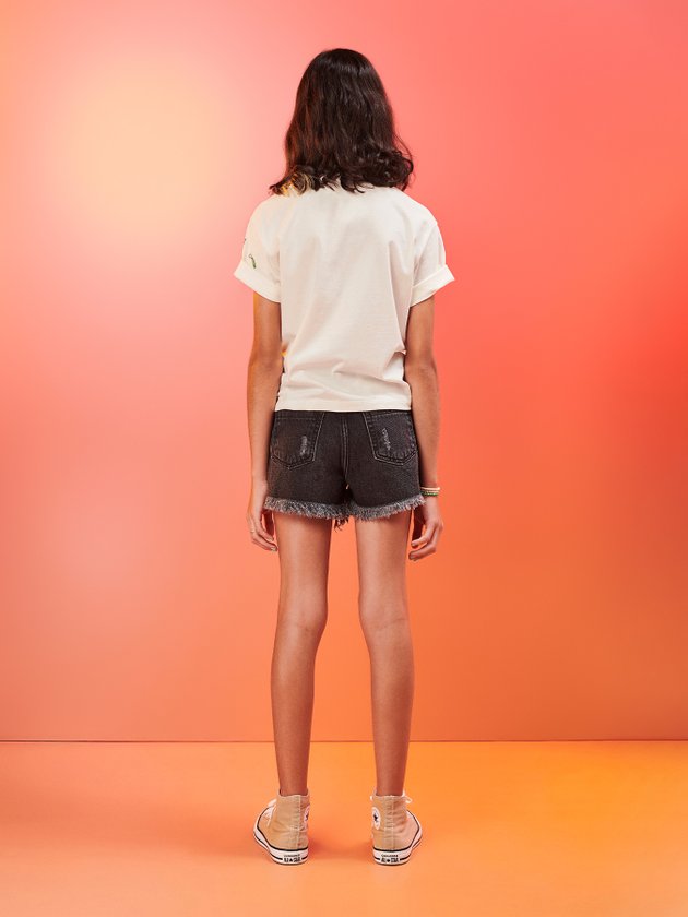 O Short Jeans I’am é confeccionado em tecido maleável e flexível conta com modelagem confortável com comprimento curto. Seu fechamento é através de botão e zíper, conta com bolso frente funcional e aplicação de rebites. Destaque especial para detalhes em linha contrastante laranja. Composição: 100% Algodão. Ref.: R3143