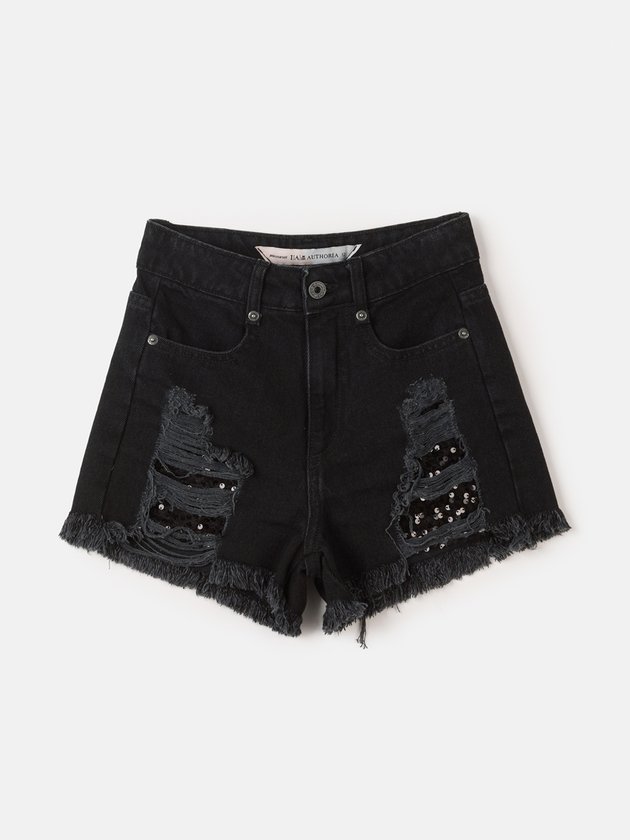Short jeans preto I Am é uma peça estilosa e prática para garotas. Com detalhe interno dos bolsos em paetê e cós com passante, é uma opção versátil e moderna. Combine com blusas de diferentes cores e estampas para criar looks incríveis para diversas ocasiões. Composição: 100% algodão. Ref.: R3446