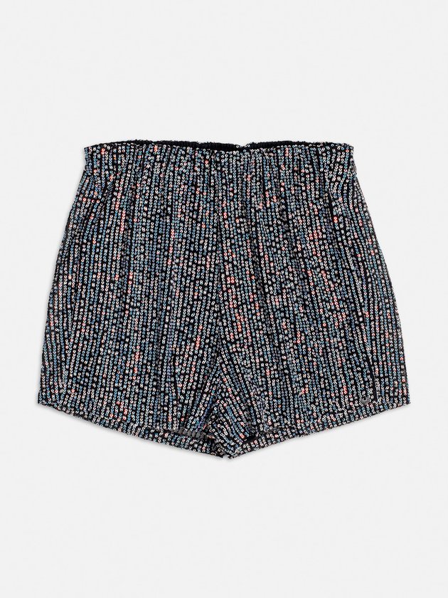 O short preto de paetê I Am é desenvolvido em malha, além de versátil é uma peça que deixa as garotas ainda mais estilosas. Conta com aplicação de paetê e cós com elástico. Com este short as meninas estarão prontas para arrasar. Composição: 97% poliéster e 3% elastano. Ref.: R4184