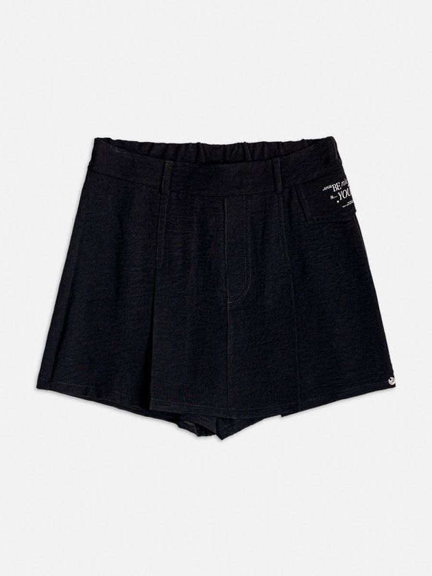 O short saia preto I Am foi desenvolvido em crepe, além de versátil é uma peça que deixa as garotas ainda mais estilosas. Conta com passante para cinto, pregas e lateral com estampa. Composição: 100% Poliéster. Ref.: R4202