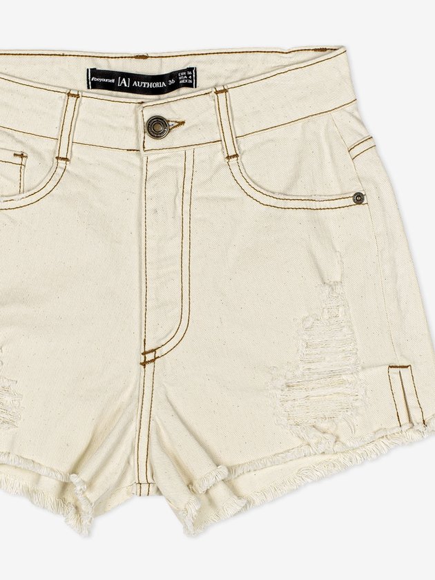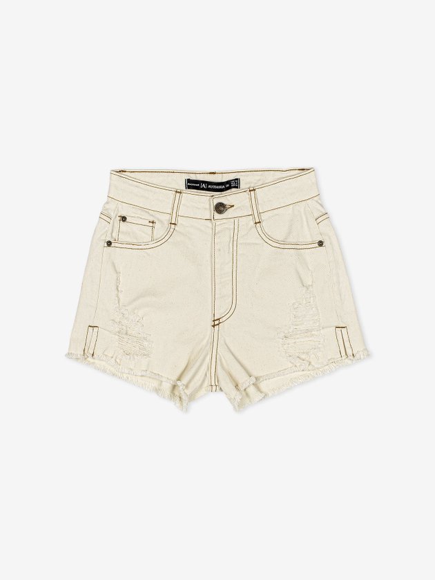 O Short Authoria foi confeccionado em jeans com lavação clara, em seus detalhes traz bolso funcional, zíper e botão além dos rebites em metal e cós com passante, seu design é finalizado com barra desfiada e é uma peça que fará ótimas composições com blusa ou cropped que as garotas vão amar. Composição: 100% algodão. Ref.: T8282