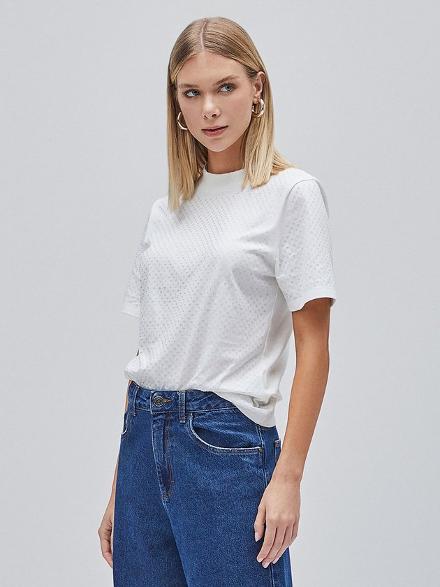 T-Shirt Off White com Strass