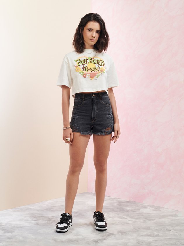 A T-shirt Authoria foi confeccionada em malha flamê na cor Off White. Conta com modelagem ampla e comprimento curto deixando os looks ainda mais fashion e cool. Uma peça versátil que combina com diversas peças como calça, short ou saia. Composição: 100% Algodão. Ref.: T8264
