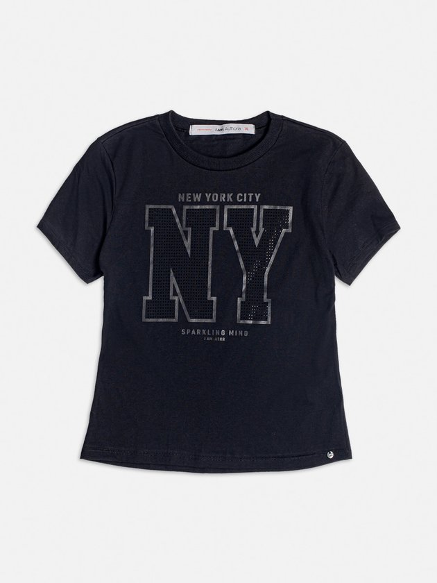 Moderna e estilosa, esta T-shirt estampada com detalhes em strass adiciona brilho ao visual. A estampa descontraída e o toque de brilho são perfeitos para criar looks casuais com um toque glamouroso.