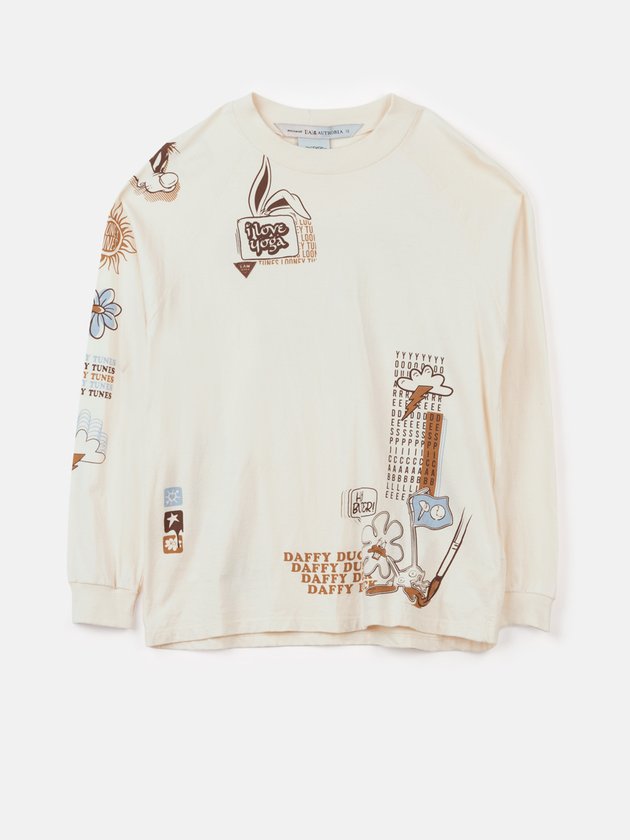 A parceira Disney + I Am trouxe peças diferenciadas dos melhores personagens. Essa blusa foi desenvolvida em malha na cor creme com estampa exclusiva frente e costas do Looney Tunes. Composição: 100% algodão. Ref.: R3485