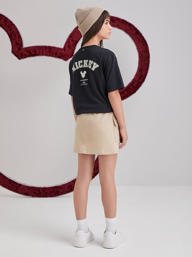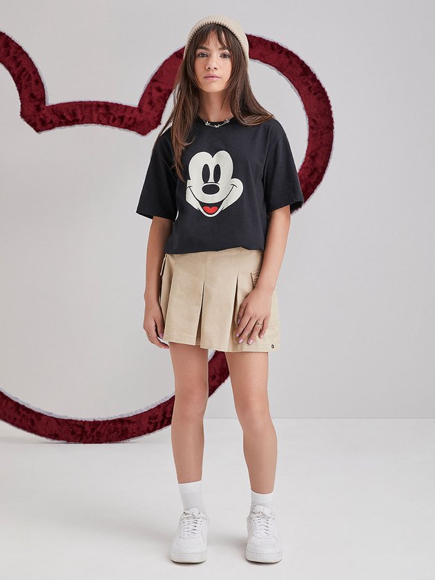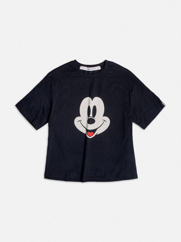 A T-shirt I Am é confeccionada em malha preta e apresenta estampa do personagem Mickey Mouse. Possui etiqueta decorativa na manga e é uma opção prática para o dia a dia. Com um design moderno e casual, é uma peça versátil que pode ser combinada com diversos estilos. Composição: 100% algodão. Ref.: R4354
