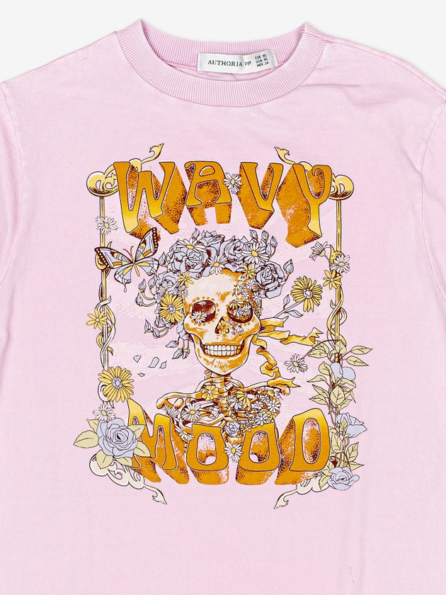 A T-shirt feminina Authoria trouxe estampa de caveira de uma forma bem cool. O modelo é desenvolvido em meia malha e conta com modelagem over, manga curta e decote redondo em ribana. As garotas vão amar essa peça que pode ser combinada com calça, shorts ou saia. Composição: 100% algodão. Ref.: T8332