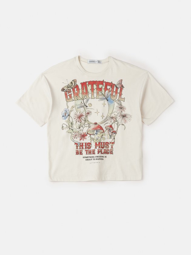 A T-shirt Authoria é confeccionada em meia malha e apresenta uma estampa delicada na parte da frente. Com decote em ribana, é uma peça prática que pode ser facilmente usada em diferentes looks. Composição: 100% algodão. Ref.: T8769