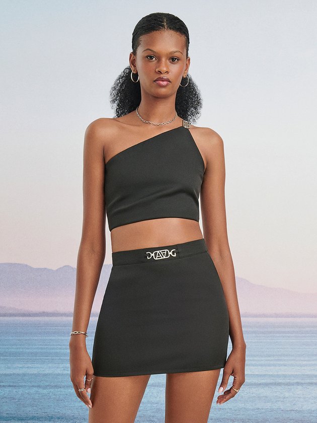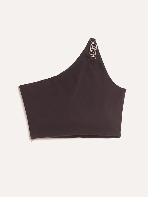 O Cropped preto Authoria é confeccionado em tecido de alta qualidade com abertura em zíper, proporcionando conforto. Possui plaquinha de metal no ombro, conferindo um detalhe diferenciado à peça.o, é perfeito para compor looks cheios de estilo e personalidade. Composição: 95% poliéster e 5% elastano. Ref.: T9109