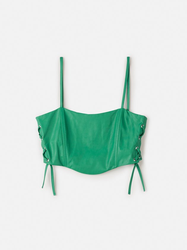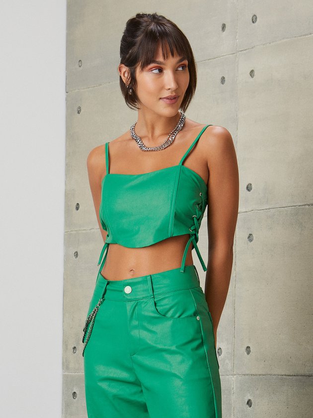 O corset verde da marca Authoria é uma peça moderna e estilosa, elaborada em fake leather de alta qualidade. Com zíper nas costas e plaquinha de metal, é um item diferenciado e elegante. A lateral com amarração dá um toque a mais de charme.Composição: 87% viscose e 13% poliéster. Revestido: 100% poliuretano. Ref.: T8797