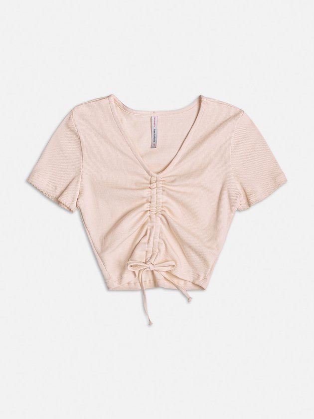 Delicado e versátil, este cropped bege é perfeito para compor looks estilosos e confortáveis. A modelagem ajustada com decote em V valoriza o visual, enquanto o detalhe de amarração frontal permite personalizar o ajuste, adicionando um toque de charme único. A textura canelada traz modernidade à peça, que combina facilmente com jeans, saias ou shorts, sendo ideal para ocasiões casuais ou descontraídas. Ref.: R3999