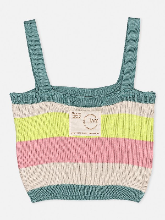 Confeccionado em tricô o Top Cropped I'am foi desenvolvido em cor crua com recortes coloridos que deixam a peça ainda mais fashion. Ideal para para compor looks modernos com peças de cintura alta, conta com alça regata e etiqueta costurada na barra. Composição: 100% acrílico. Ref.: R3090