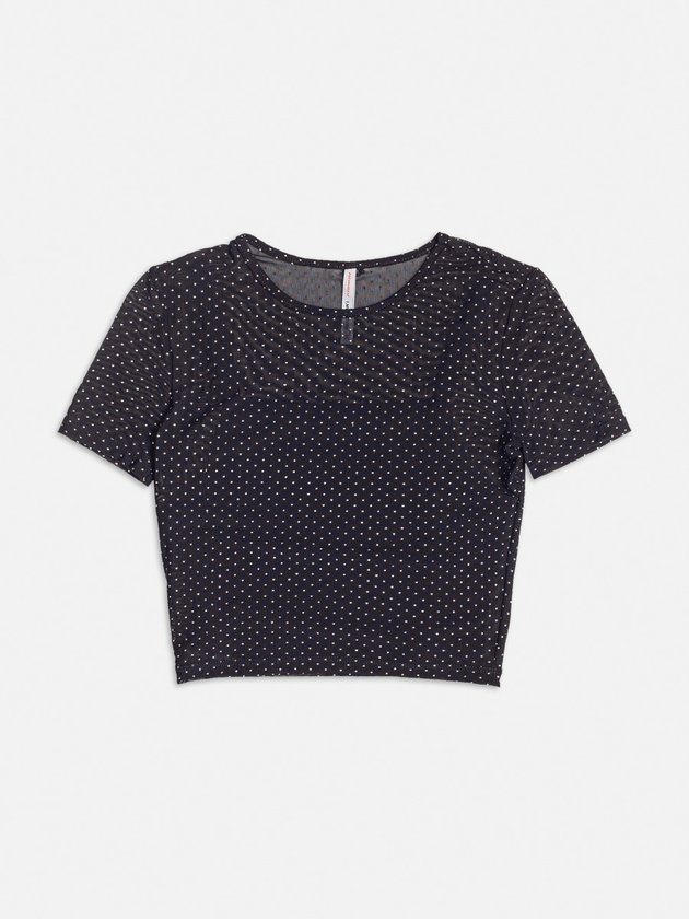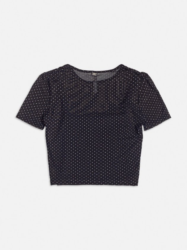 Chique e sofisticado, este top de tule preto é perfeito para combinar com diversas peças, oferecendo um toque de elegância e mistério ao seu look.