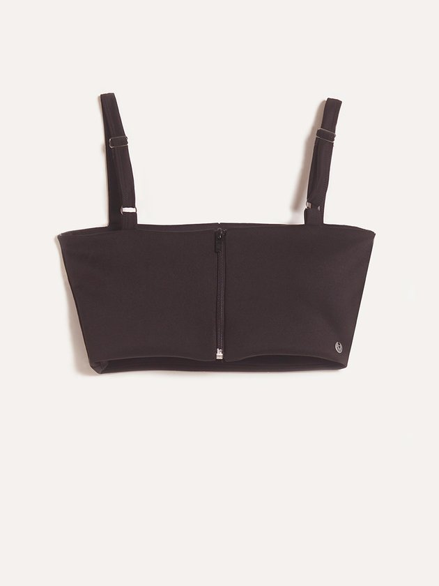 Top preto da Authoria foi confeccionado em malha neoprene com detalhe em pedraria na parte frontal. Possui alças ajustáveis com regulador e fechamento por zíper nas costas. Seu design único e fashion é perfeito para compor looks cheios de estilo. Composição: 96% poliéster e 4% elastano. Ref.: T9082