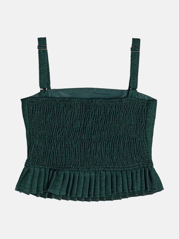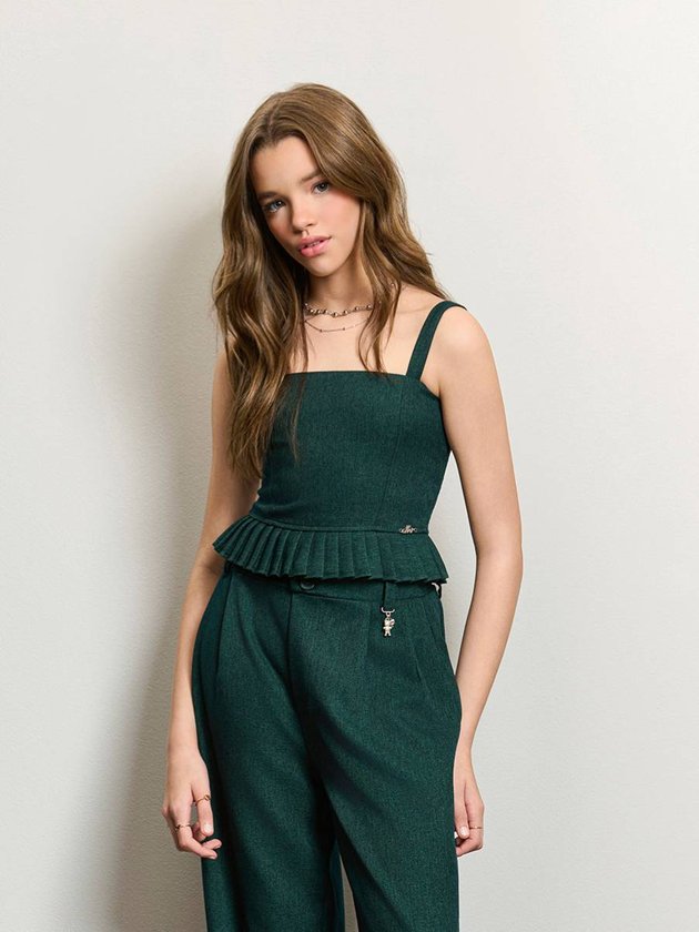 Top Green de Alfaiataria Plissada e Alças Finas