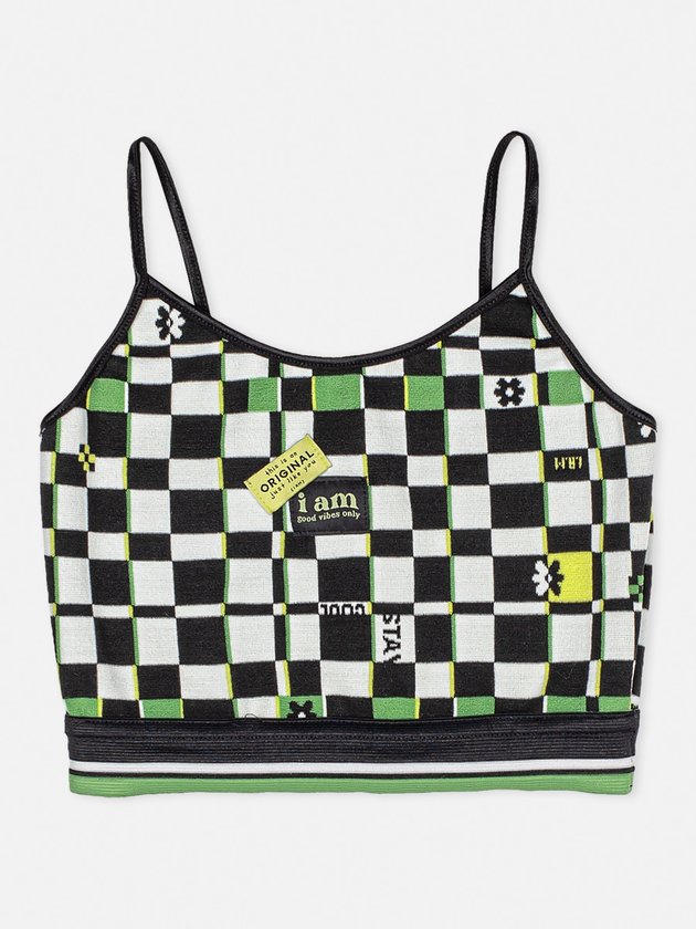 O cropped I Am foi desenvolvido em jacquard com estampa exclusiva quadriculada. Nos detalhes traz alças e barra com elástico aumentando o conforto da peça no corpo das garotas. Um top exclusivo que deixa o look delas ainda mais estiloso e moderno. Composição: 82% poliéster e 18% elastano. Ref.: R3147