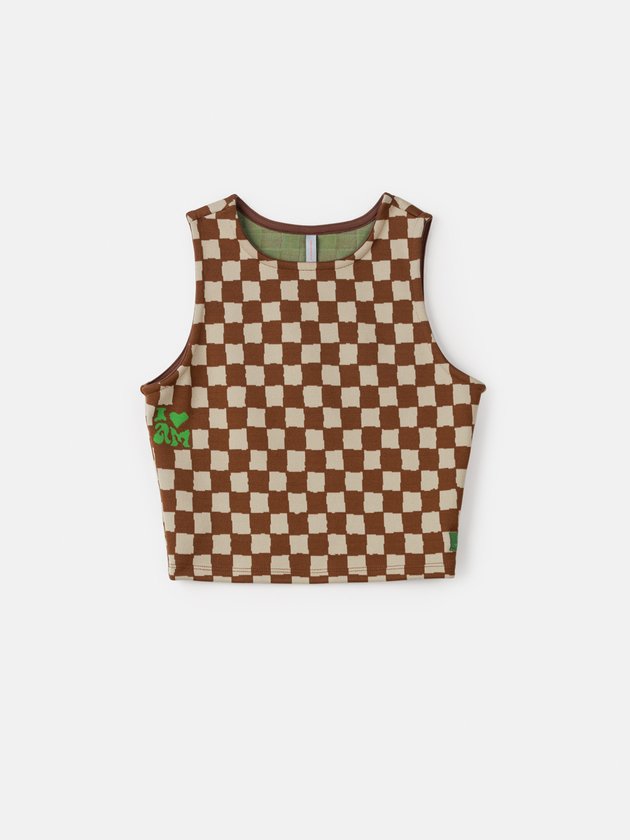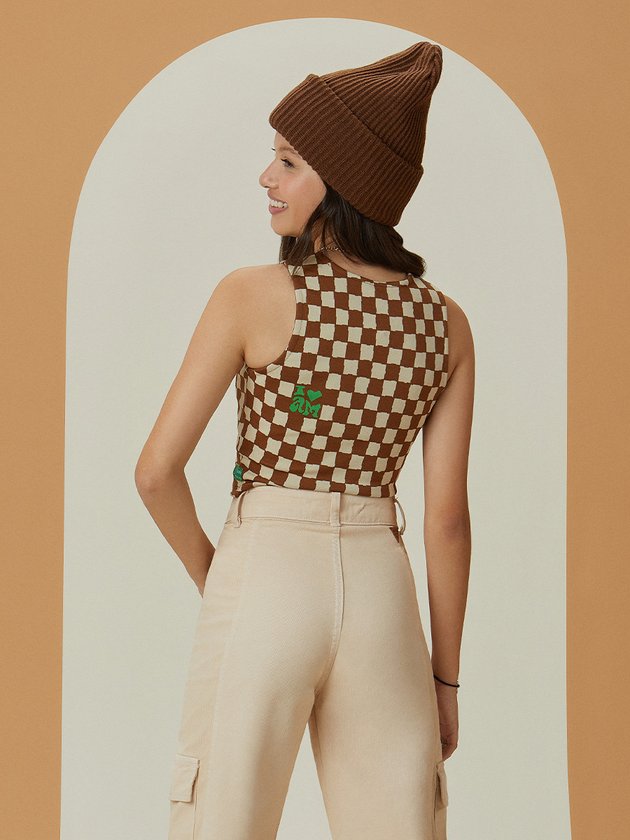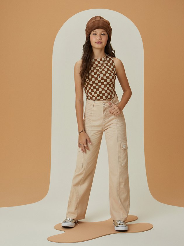 A regata I Am foi desenvolvida em tecido jacquard com estampa quadriculada, além de fashion é uma peça ótima para arrasar nas combinações, as garotas vão amar! Conta com modelagem cropped que está super em alta e etiqueta decorativa personalizada da marca. Composição: 91% poliéster e 9% elastano. Ref.: R3740