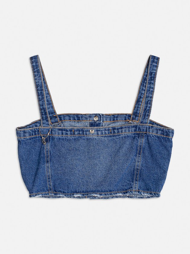O cropped jeans I Am é desenvolvido em jeans, além de versátil é uma peça que deixa as garotas ainda mais estilosas. Conta com alças, fechamentos através de botões, e pingente pendurado. Composição: 100% algodão. Ref.: R4261
