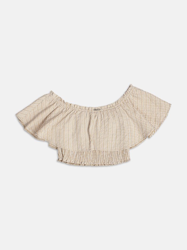 O ombro à mostra e o efeito anarrugado garantem um visual leve e feminino. Versátil e moderno, o top valoriza o colo e se encaixa perfeitamente em produções casuais e urbanas. Ref.: R5255