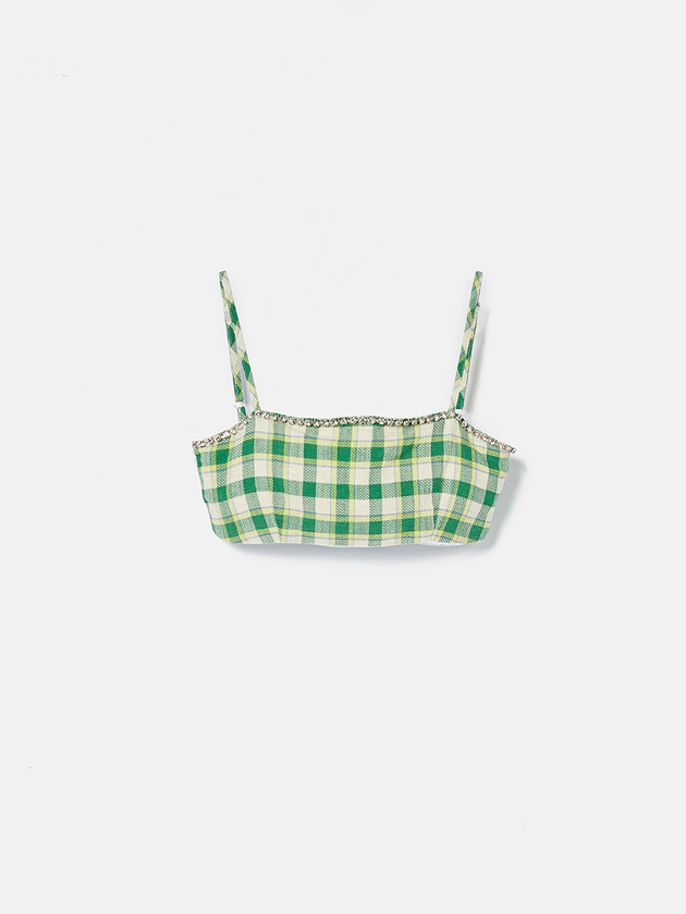 O Cropped verde xadrez Authoria é confeccionado em tecido de alta qualidade. Possui alças ajustáveis com regulador, lastex nas costas para melhor ajuste, detalhes de pedraria que adicionam um toque fashion e acompanha a tendência atual. Perfeito para as fashionistas que amam uma peça diferenciada para as ocasiões especiais. Composição: 50% algodão, 35% viscose e 15% linho. Ref.: T8973