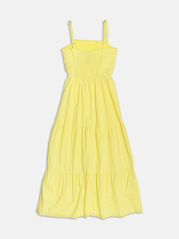 Vestido de Laise Amarelo com Detalhes Vazados