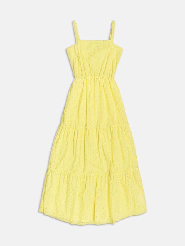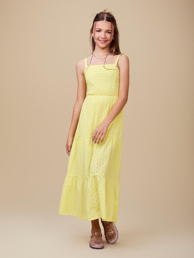 O amarelo solar encontra a delicadeza da laise e dos recortes estratégicos nesse vestido que é puro charme. Feminino, leve e super atual, ele traduz a essência da temporada com toque artesanal e frescor.