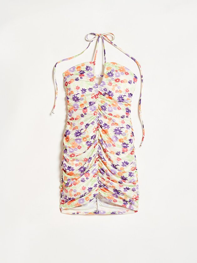 Vestido drapeado Authoria desenvolvido em malha floral, com amarração no pescoço e etiqueta decorativa. Feito para garantir conforto, é perfeito para as garotas que querem estar estilosas e confortáveis. Composição: 91% poliéster e 9% elastano. Ref.: T8938