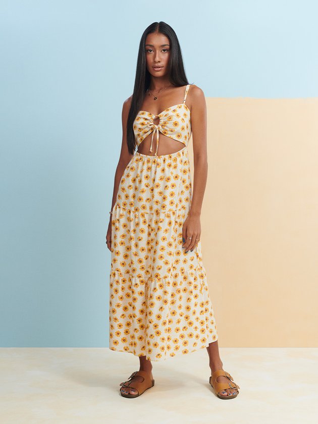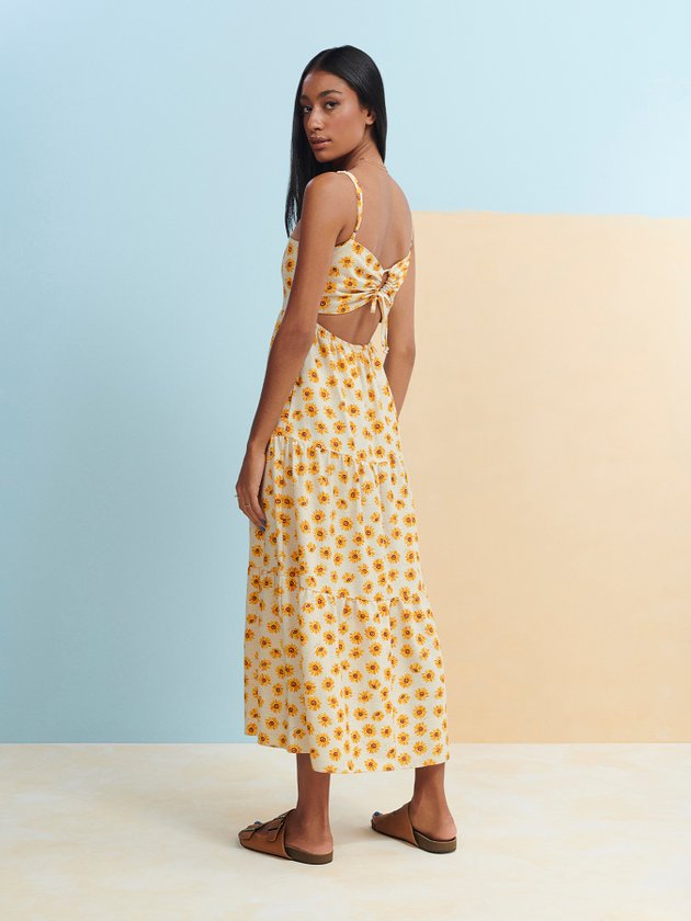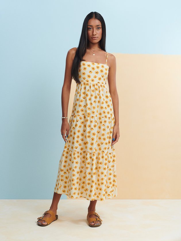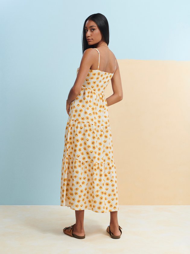O Vestido de Margaridas Authoria possui alças com regulador, costas vazada e saia com franzido, também conta com friso na parte das costas. Destaque especial para abertura vazada podendo ficar tanto na frente quanto nas costas. Versátil e moderno pode ser usado com tênis, coturno ou sandália, além de combinar com terceira peça como jaqueta. Composição: 50% Viscose, 44% Algodão e 6% Linho. Ref.: T8465