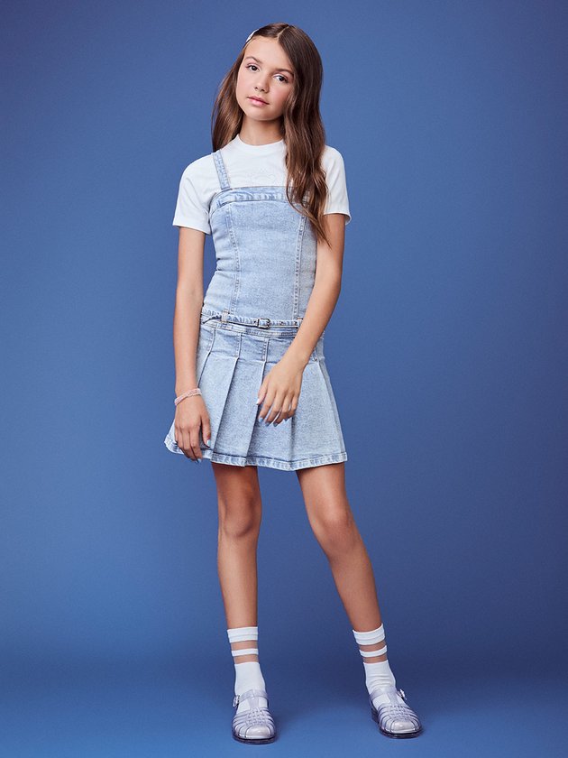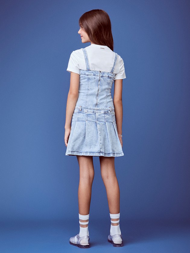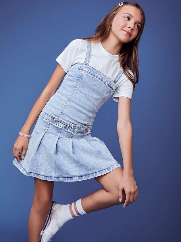 O jeans ganha leveza e movimento com o detalhe das pregas, criando um vestido moderno com vibe cool e urbana. Uma peça versátil que transita do dia para a noite com personalidade.