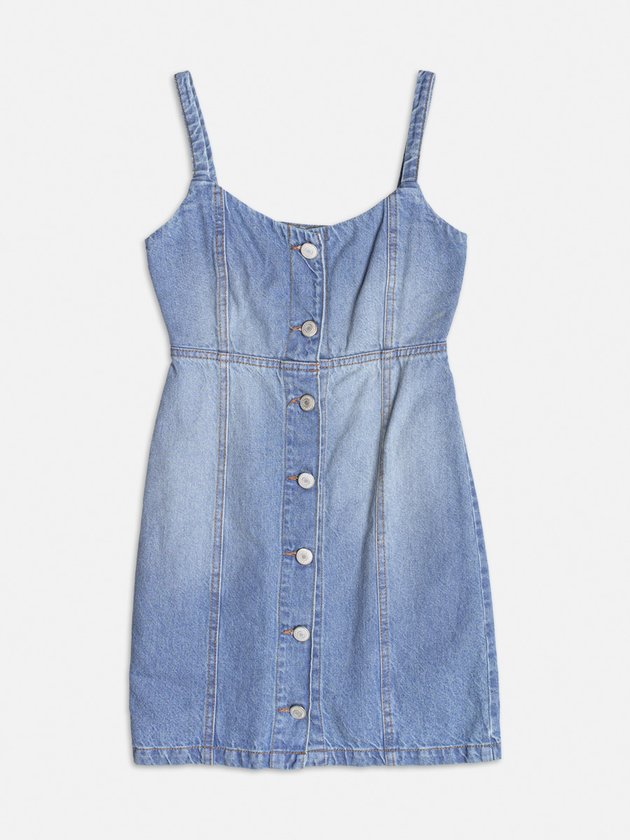 Com mood casual e toque vintage, esse vestido jeans ganha charme com os botões metálicos frontais e recorte na cintura. O shape ajustado valoriza a silhueta com naturalidade.