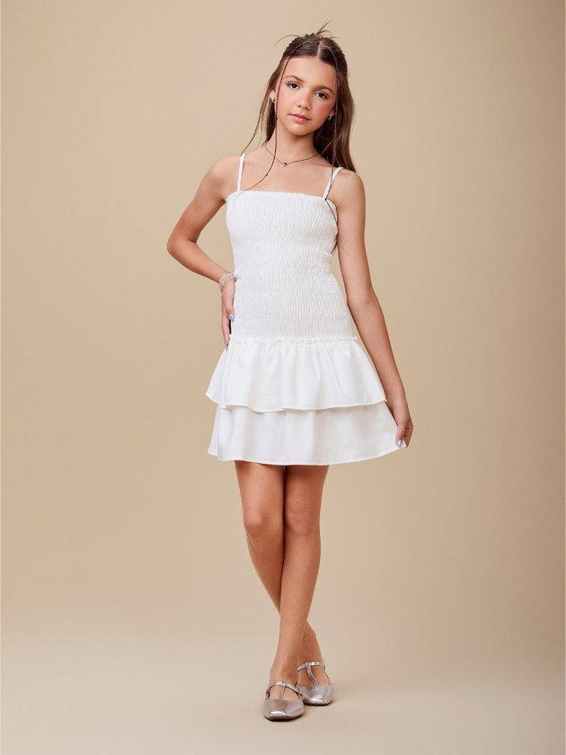 Vestido Off White com Lastex