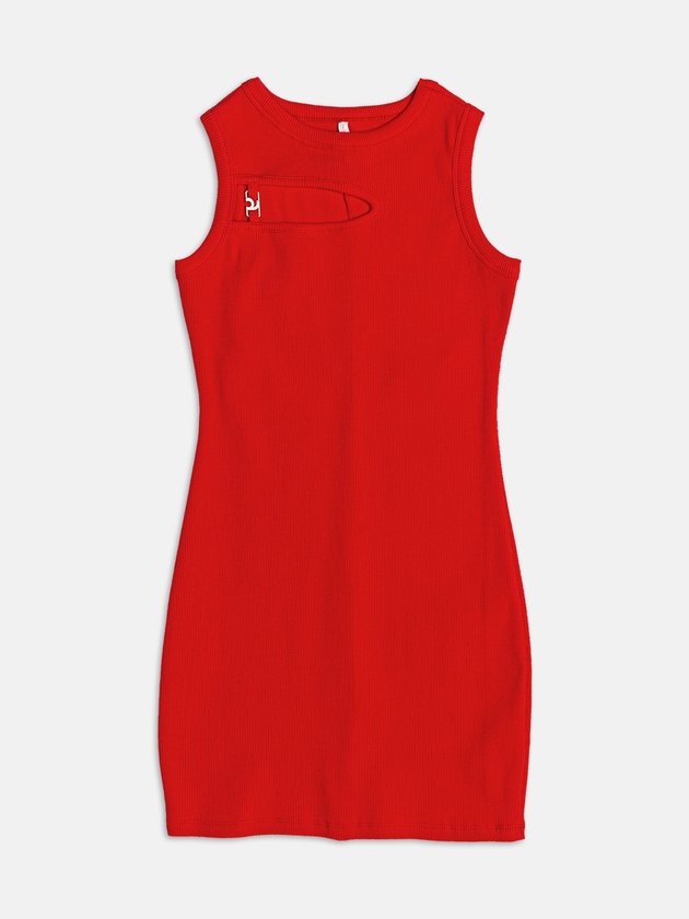 O detalhe metálico quebra a suavidade da ribana, adicionando um toque edgy ao vestido. Uma peça cool, que funciona tanto com tênis quanto com botas.
