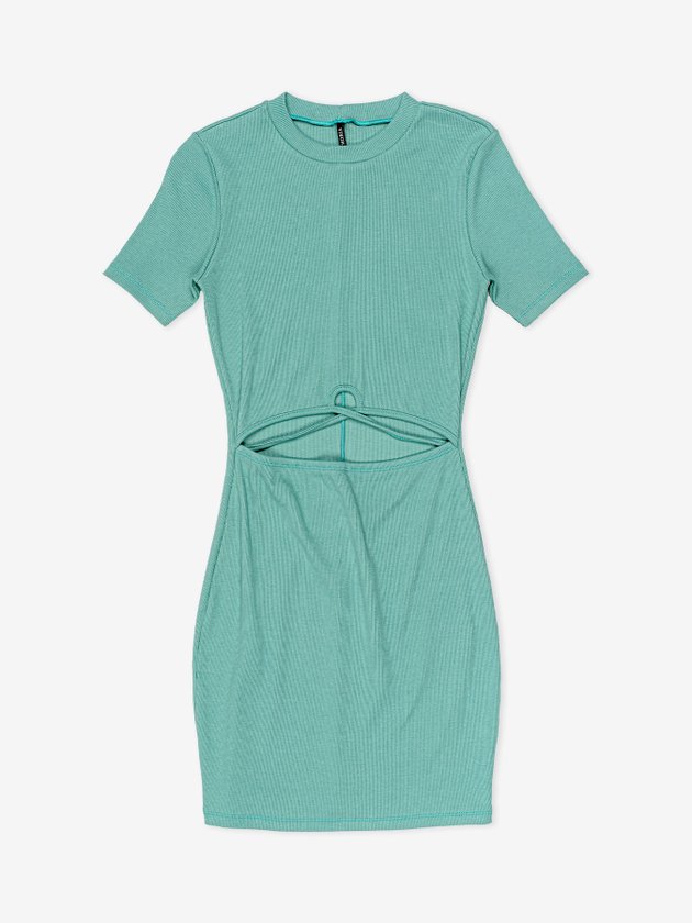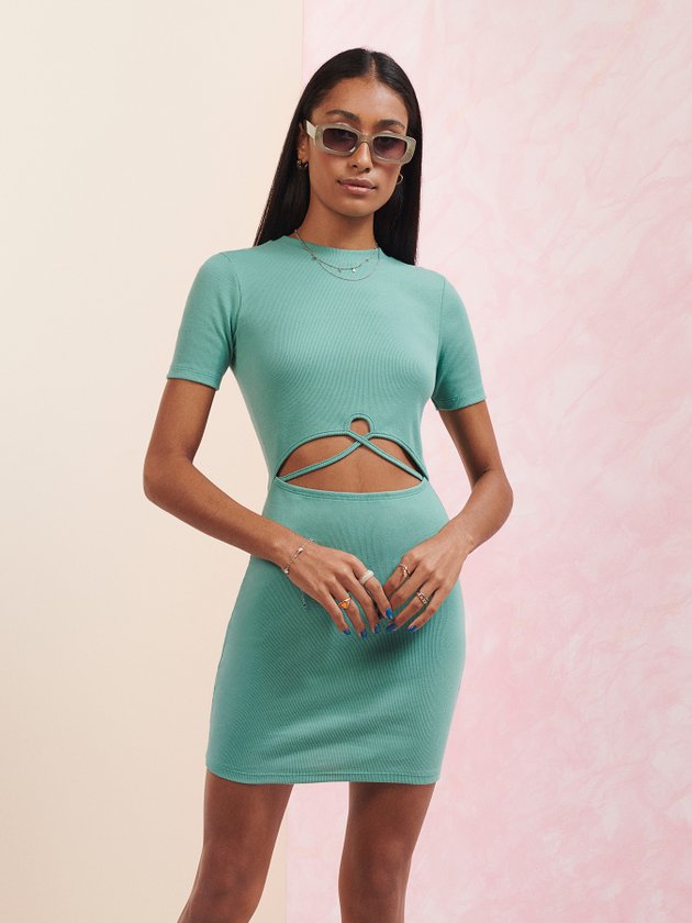 Confeccionado em ribana na cor verde o Vestido Authoria conta com modelagem justa, manga curta e é ideal para dias quentes e para usar com segunda peça como jaqueta jeans, deixando o look ainda mais despojado. Em seus detalhes o vestido traz abertura na parte frontal. Composição: 98% algodão e 2% elastano. Ref.: T8387